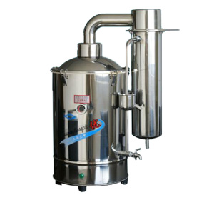 蒸餾水器是用電加熱自來(lái)水制取純水。化驗(yàn)室等部門使用蒸餾水器一般都是采用優(yōu)質(zhì)的不銹鋼材料,經(jīng)過(guò)特殊處理后加工而成。這樣不僅充分保證了蒸餾水的質(zhì)量,而且也大大提高了使用壽命。